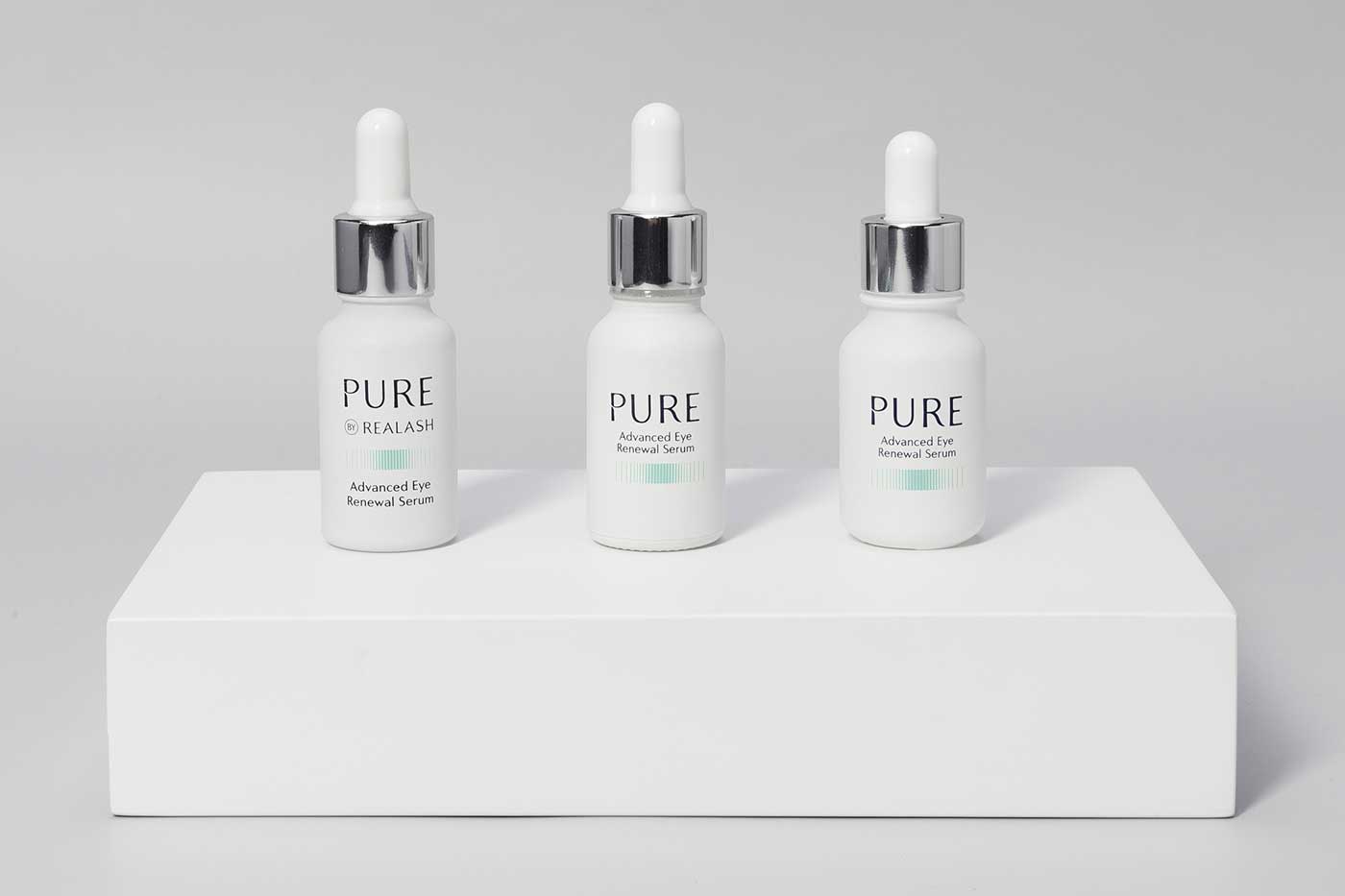 面对这一挑战,我们决定把重点放在产品再生这一主要特征上。对于主图形元素,我们创建了动态的粗线条,粗细程度取决于不同的产品类型。我们创建了基于三个元素的标志,这对品牌形象是很重要的——眼睛、水和球体,代表生活的循环。我们选择柔和的字体和颜色,还选择了薄荷色作为整个包装的主要颜色,因为它给皮肤的品牌想要体现的感觉。