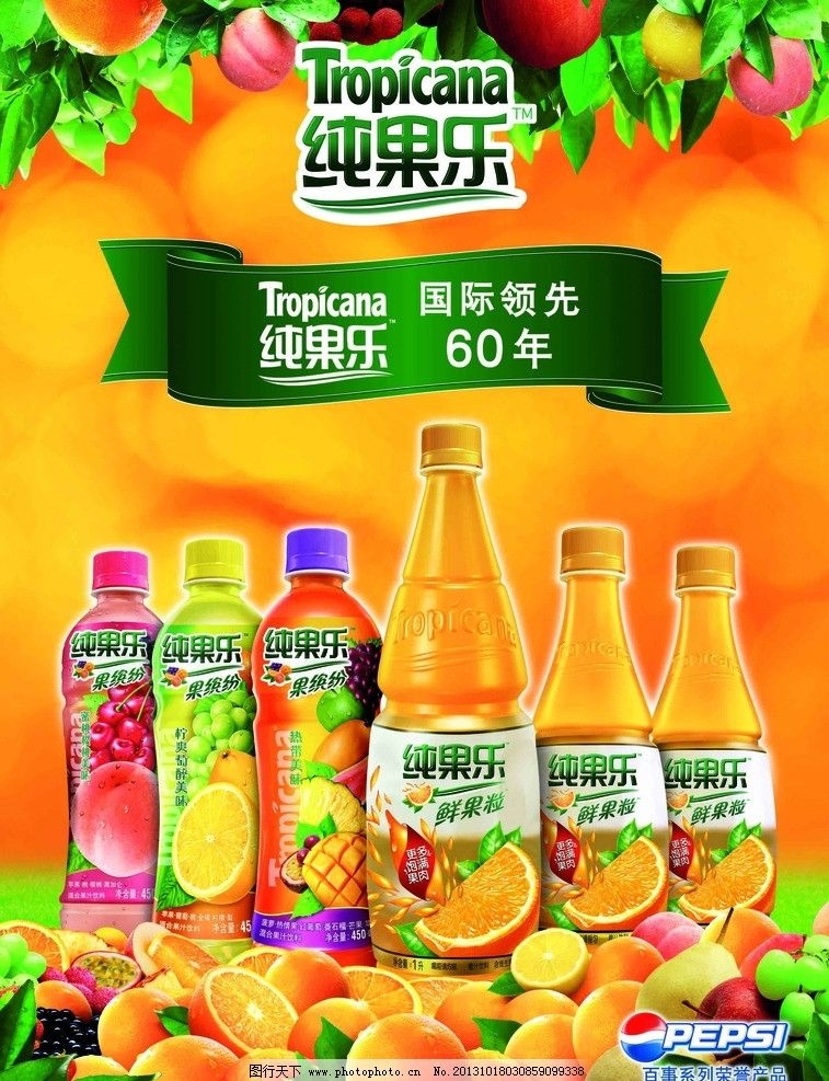 2009年年初,百事旗下的果汁品牌纯果乐将其原来的“伸出吸管的橙子”的包装图案换成了一个更简单的设计:一个装满橙汁的玻璃杯。