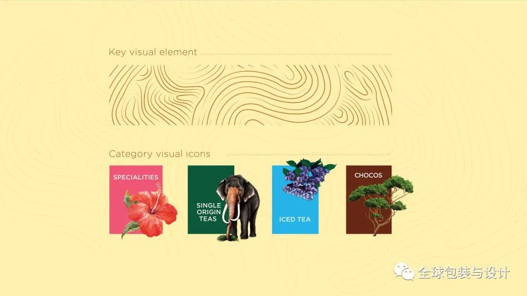 独特的视觉语言使用等高线来复制茶园,给人一种品牌与土地紧密相连的感觉。