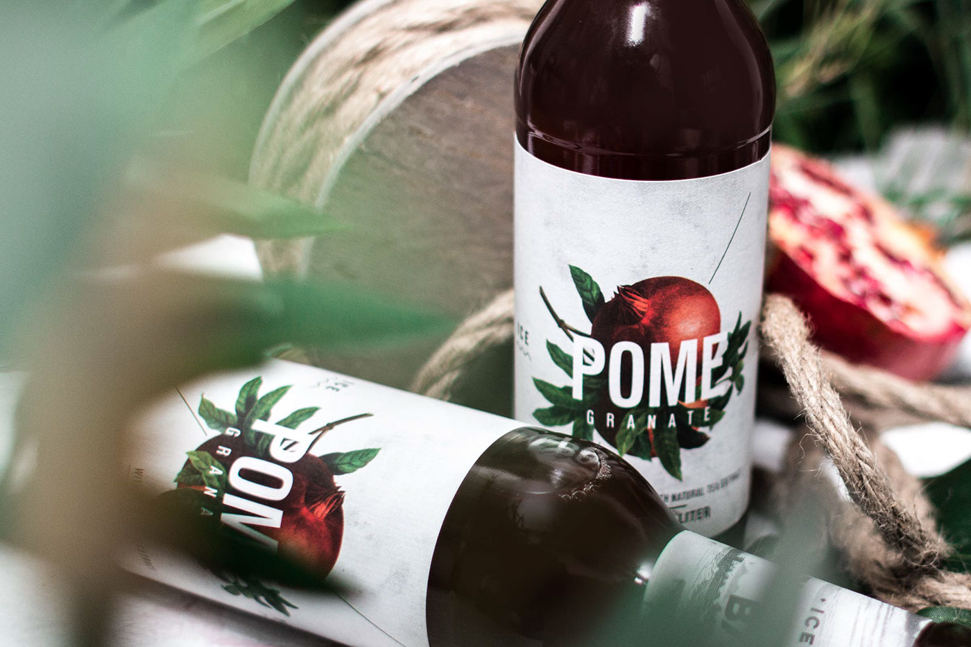 我们决定用视觉语言表达产品天然的本质,时尚的插画是这次设计的视觉中心。逼真的水果插画,色调略带复古的感觉,绿叶的修饰使水果看起来更加新鲜,表达了产品的优良品质。瓶口处的黑白色的包装有种酷酷的而又神秘的感觉,仿佛在向你挑战。无衬线字体、斜线和简单清晰的排版使包装更具时尚感,整体的包装布局相同,插画不同,让系列的产品包装看起来既和谐统一又灵活变换。