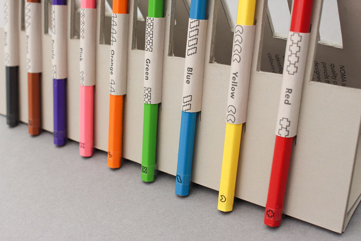 NOMA是一种针对彩色铅笔的包装设计。包装使用一个符号编码系统来表示每种颜色。整体图形侧重于创建一个平滑和不间断的用户体验。独特的结构包装,让用户可以把彩色铅笔分成深色和浅色调。