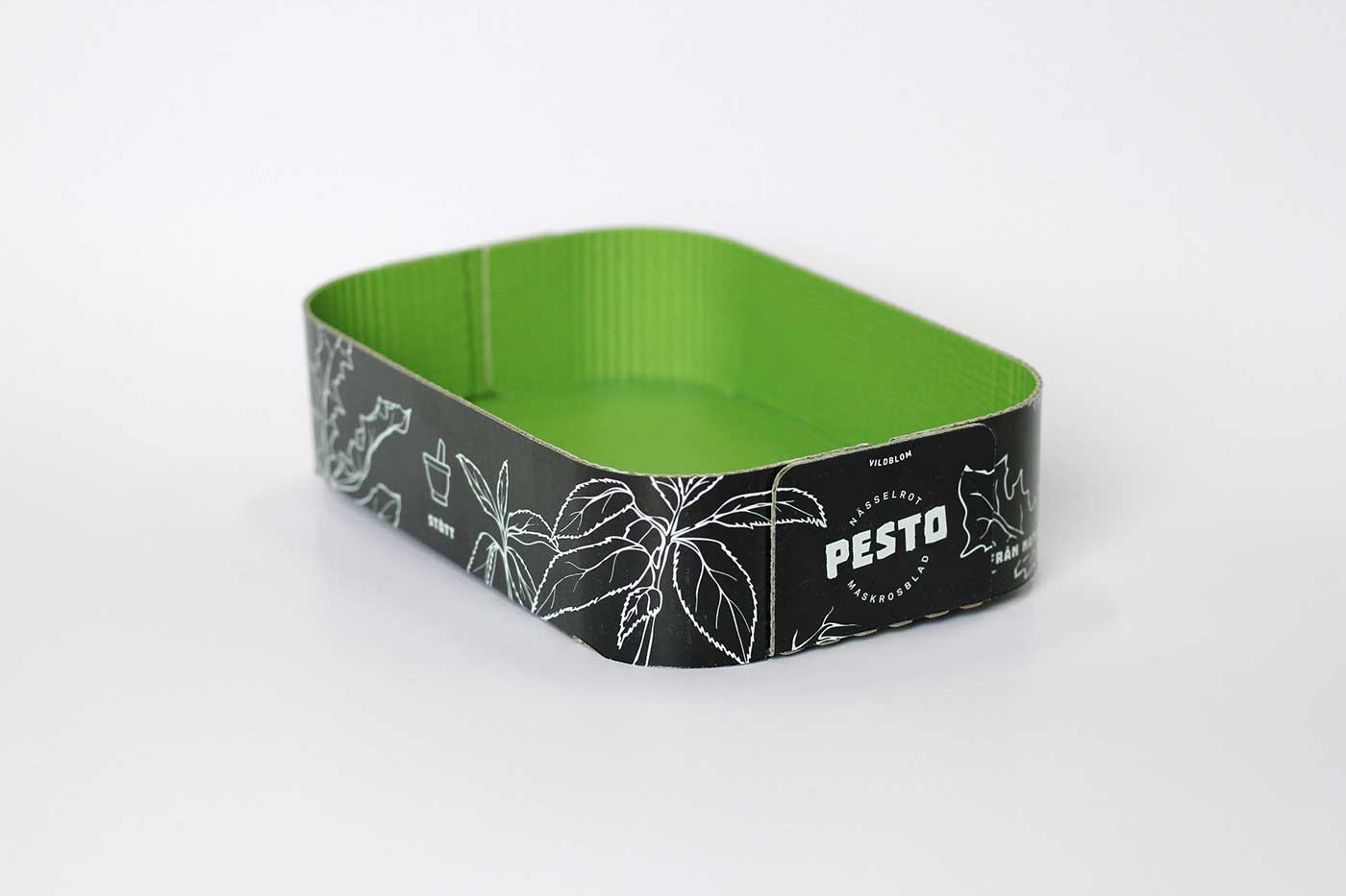 Vildblom是一家瑞士品牌,我们很荣幸为其新产品香蒜酱设计包装,我们引进了新的卡尔加特纸板,根据新纸板的主要特点,利用圆角的包装盒来展示产品。